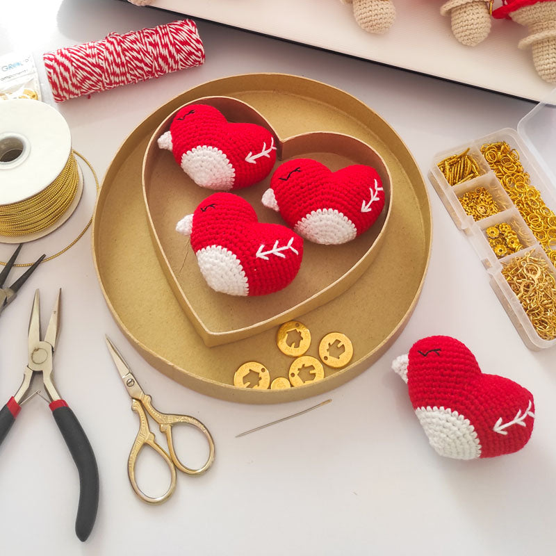 Πλεκτό Χριστουγεννιάτικο Στολίδι Μικρό Κόκκινο Αηδόνι- Ύψος 6εκ