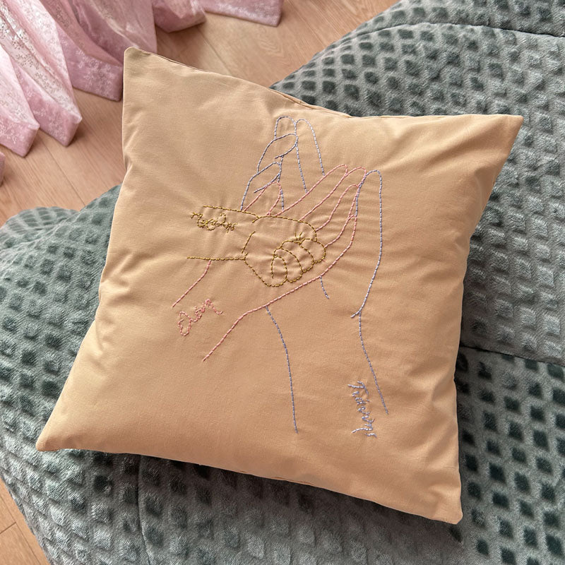 Χειροποίητο Διακοσμητικό Μαξιλάρι με Κέντημα - Προσωποποιημένο - "Μαμά, Μπαμπάς και Μωρό"