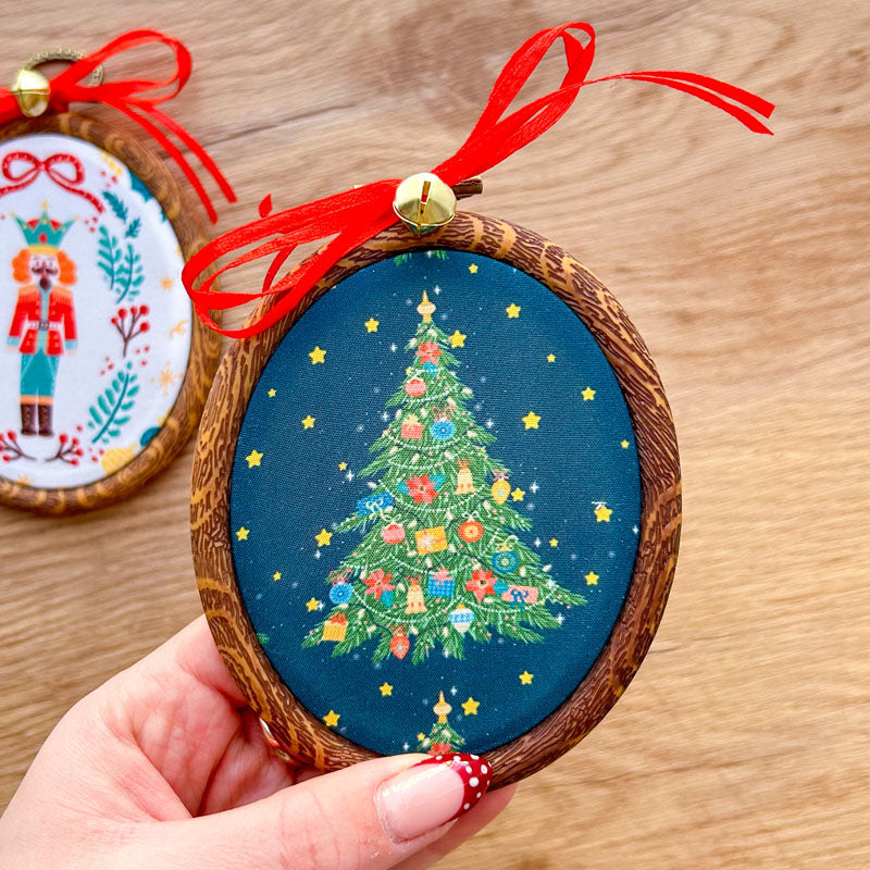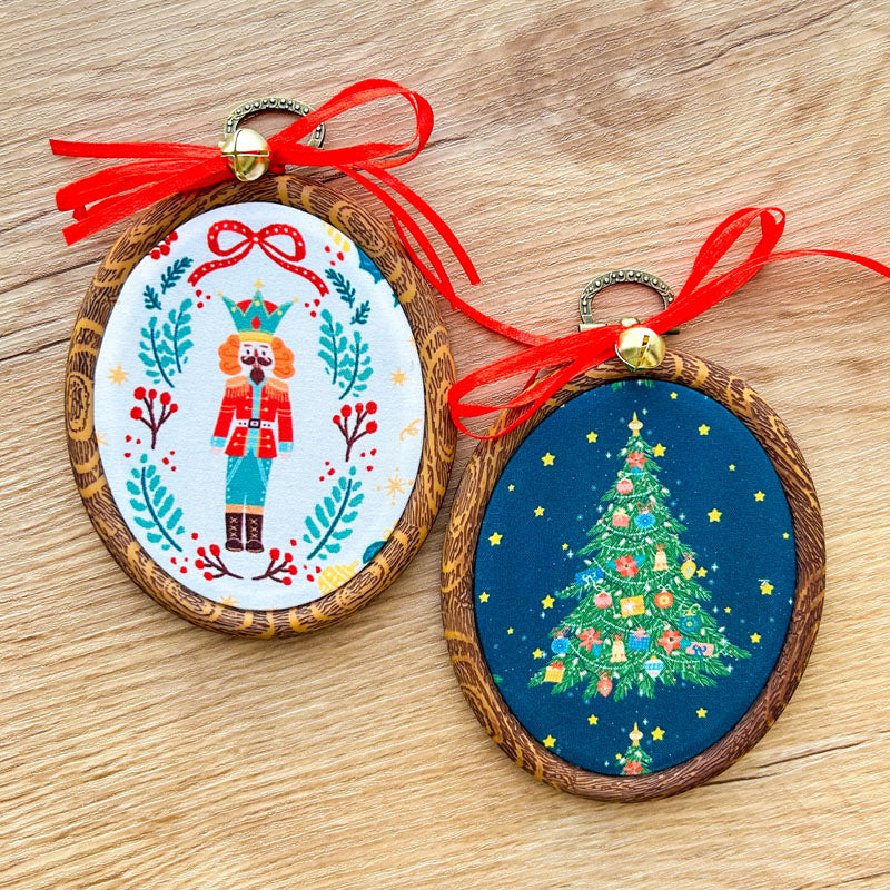 Χριστουγεννιάτικα Στολίδια σε Τελάρο Κεντήματος - 2 Τεμάχια - Δέντρο και Καρυοθραύστης