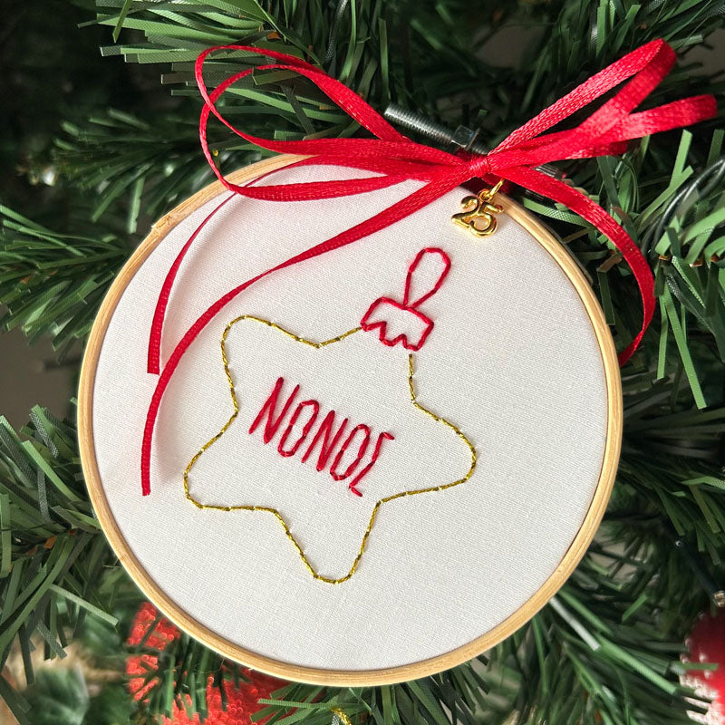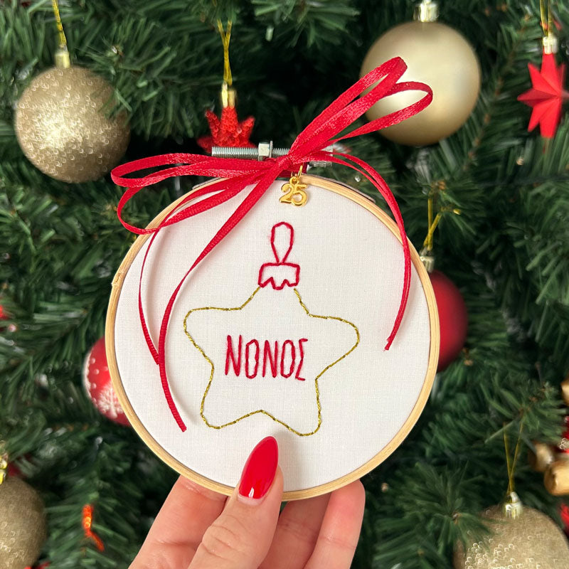 Χριστουγεννιάτικο Χειροποίητο Τελάρο Κεντήματος με Γούρι "ΝΟΝΟΣ" - διάμετρος 10εκ