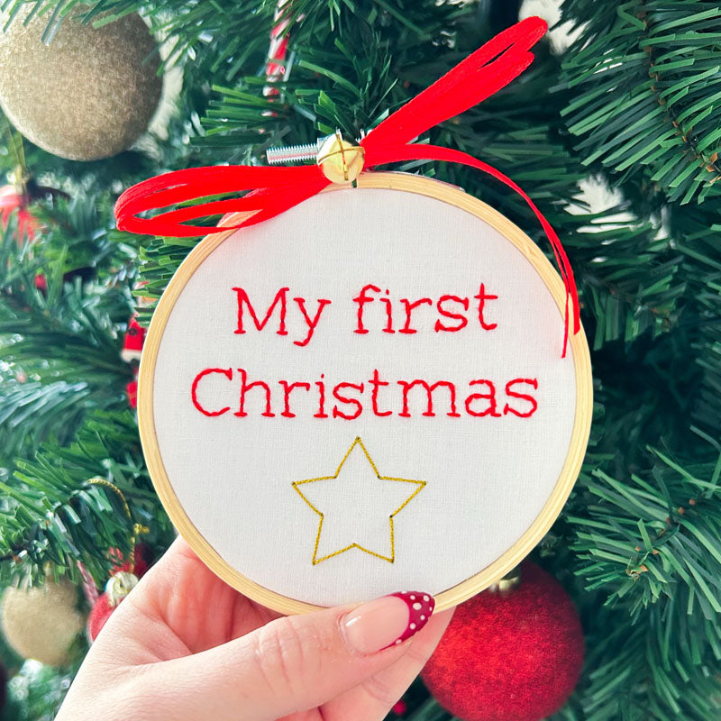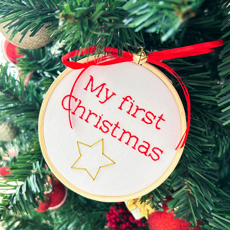 Χριστουγεννιάτικο Χειροποίητο Τελάρο Κεντήματος "My first Christmas" διάμετρος 10εκ