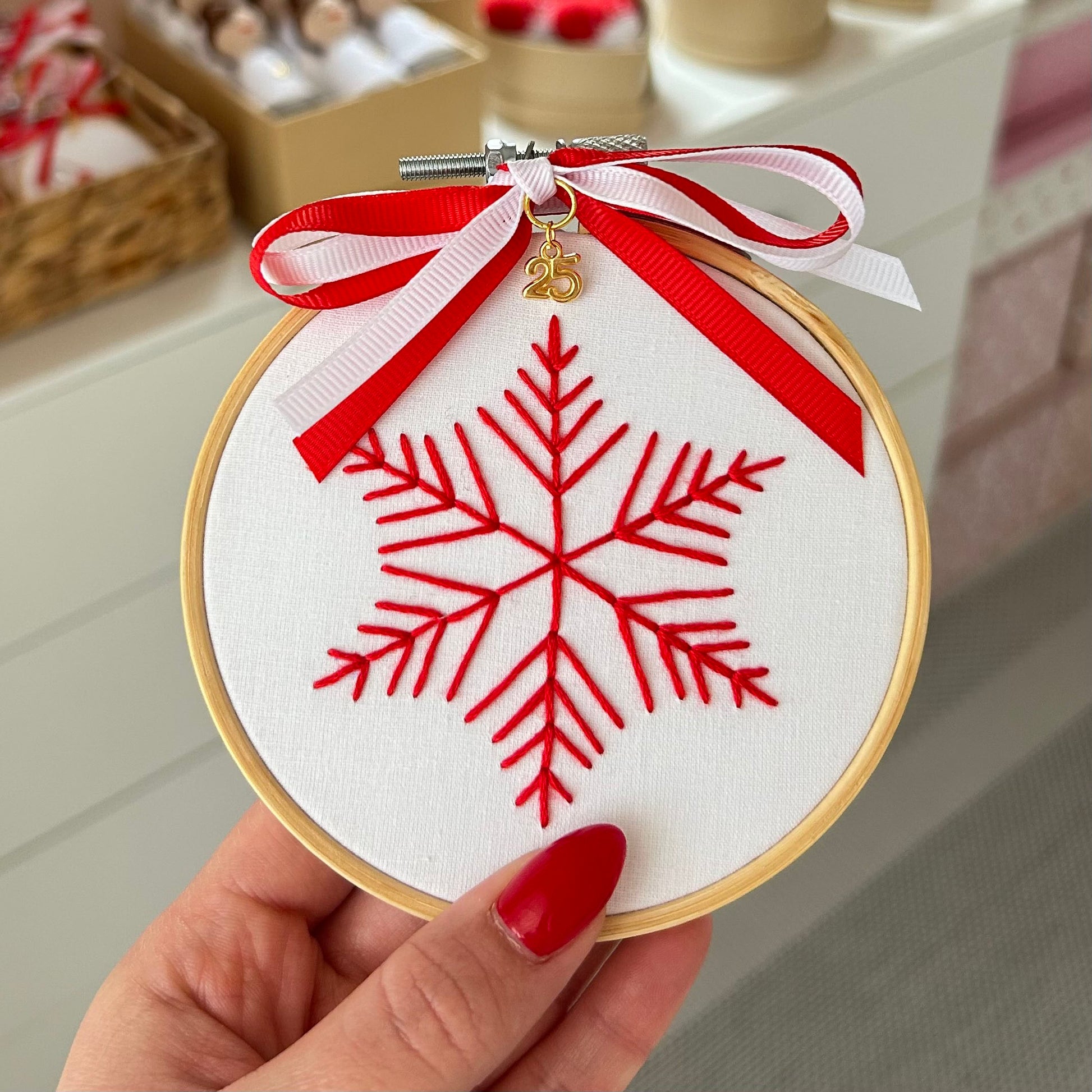 ❄️Προσθέστε ζεστασιά και θαλπωρή στο σπίτι σας με αυτό το Χειροποίητο Τελάρο Κεντήματος Γούρι με την Κόκκινη Χιονονιφάδα!